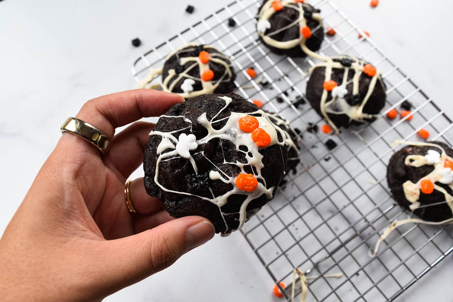 We are officially in sugar-high season. Best. Freaking. Season!!!!! In past years, I’ve shared Halloween candy cookies - a recipe I love to use up leftover Halloween candy. But this year I wanted to do something that felt a little more spooky and ambient. Enter mocha cobweb cookies. The base dough is my go-to chocolate dough, a slight adaptation from Imperial Sugar that I’ve used in raspberry-stuffed dark chocolate cookies and midnight Oreo cookies.